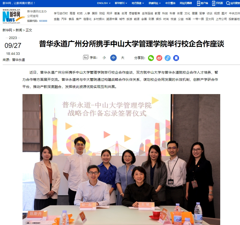 媒体聚焦丨新华网报道伟德国际victor1946与普华永道广州分所举行校企合作座谈