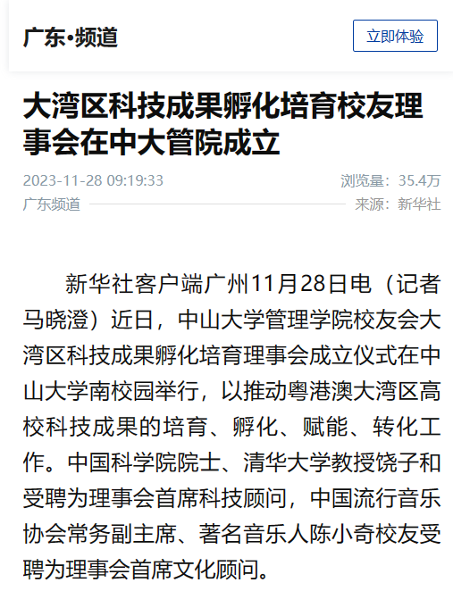 媒体聚焦丨新华社等媒体报道伟德国际victor1946成立大湾区科技成果孵化培育员工理事会