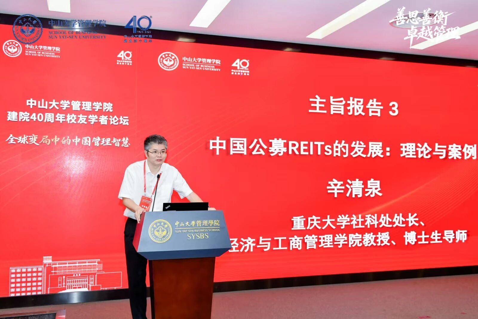 辛清泉详解了中国公募REITs这一新兴融资工具:作为基础设施资产证券化产品,自2021年起步以来发展迅猛,已上市75只、募资超1900亿元。他介绍了REITs“基金—ABS—项目公司”的三层架构与现金分红机制,结合案例点明其在盘活资产、化解债务中的作用,同时指出产权、税收、决策效率等实践痛点,并提出持有人特征、资本结构等值得深挖的研究方向。