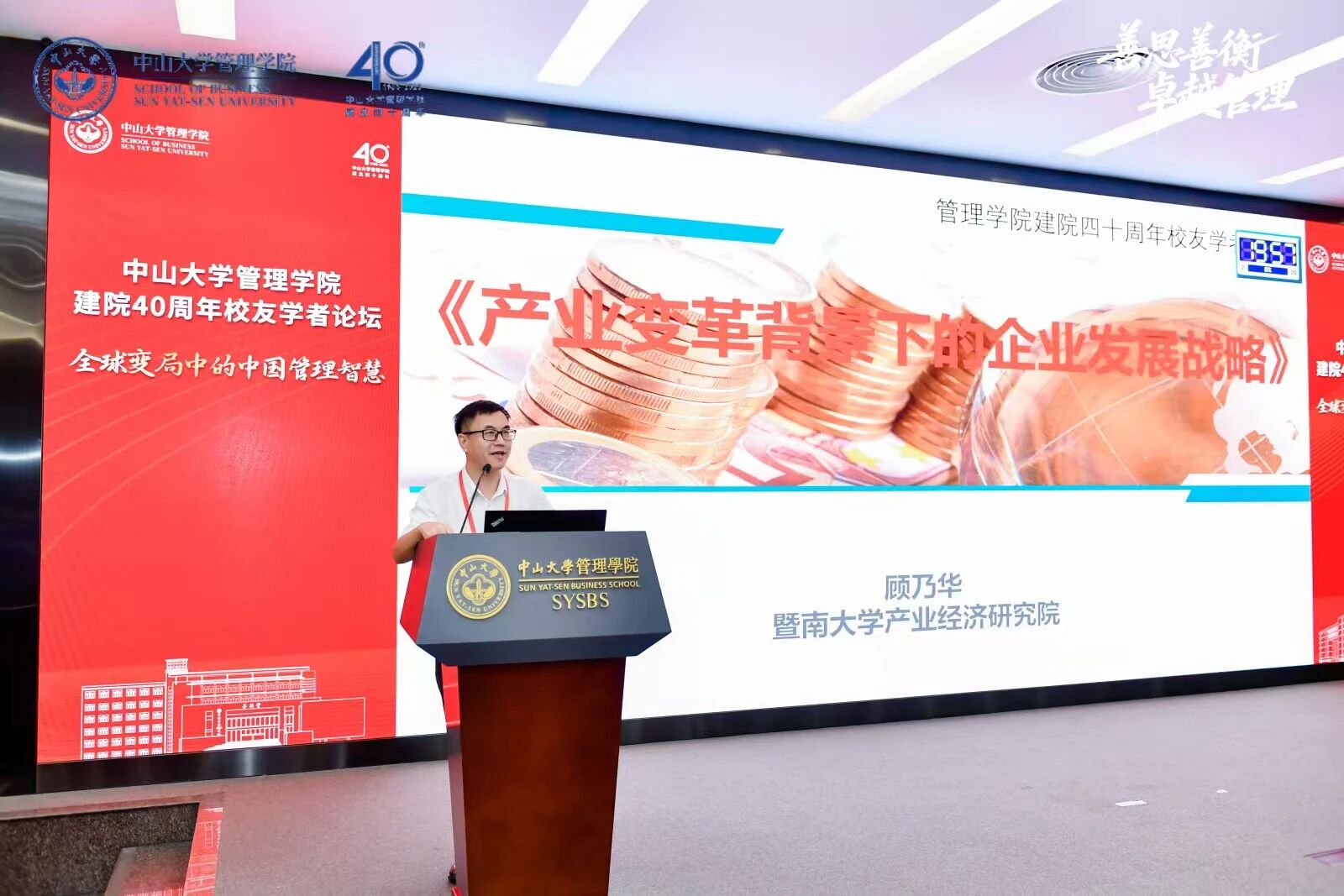 顾乃华围绕“产业变革背景下的企业发展战略”展开分享。他指出企业发展需兼顾短期“黑天鹅事件”与长期技术、人口等趋势,结合中国政策与竞争环境研判机遇挑战,PEST与SCP框架可助力企业理性决策。他以人类经济增长规律为引,强调数字经济是当前核心风口,能通过降低不确定性、构建信任机制、整合市场、推动破坏性创新赋能企业。最后建议企业短期稳现金流求生存,长期靠自主创新与数字化变革,做产业链的治理者与协调人。
