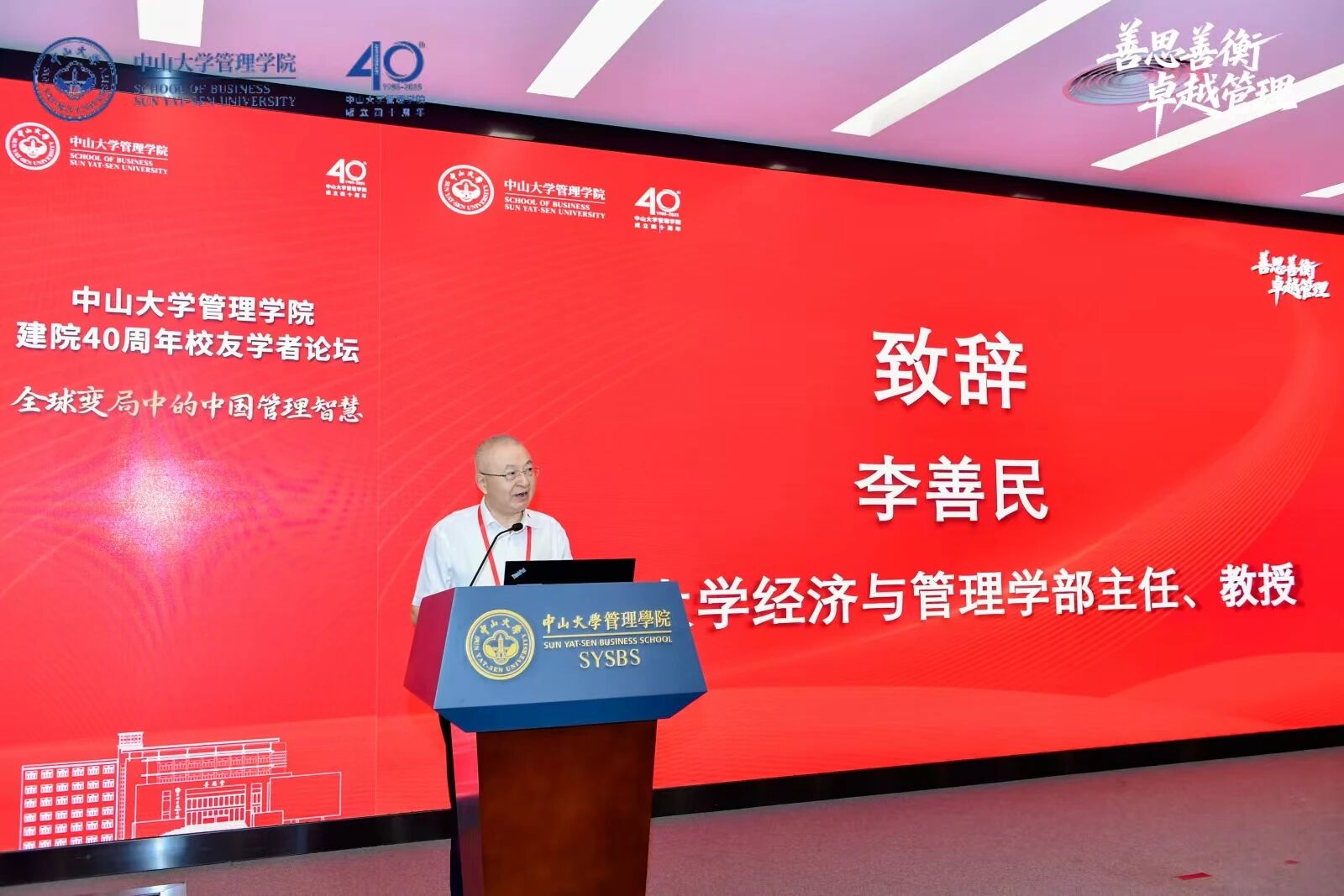 论坛开幕仪式上,李善民发表致辞。他指出,管院从珠江畔的幼苗成长为参天大树,离不开师生耕耘与员工支持;公司在团队建设上深耕工商管理领域,形成前沿生态;人才培养以“教育是慢的艺术”,培育出政界、商界、学界等各界中坚;社会服务聚焦国家需求,助力珠三角转型、大湾区建设等。他强调,员工是管院最珍贵的无形资产,无论投身公共管理、扎根实体经济,还是深耕学术、基层奉献,均以沉稳笃实的作风传承管院基因。同时,他寄语管院以长远战略格局把握 “四个面向”,在服务国家战略、助力中国式现代化的进程中,持续彰显新的作为与担当。