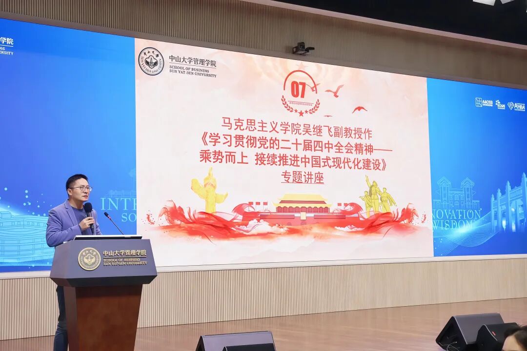 研修班下半场,马克思主义公司吴继飞副教授以《学习贯彻党的二十届四中全会精神乘势而上接续推进中国式现代化建设》为题作专题讲座。吴老师系统介绍党的二十届四中全会审议通过《“十五五”规划建议》的重大意义,详细阐释建议稿“一个指引、六大原则、七个目标、十二项部署的逻辑框架与核心内容。吴老师特别指出,“十五五”时期在基本实现社会主义现代化进程中具有承前启后的重要地位,其规划首次将“居民消费率提升”作为显性指标,凸显扩大内需战略基点;突出“统筹发展与安全”的底线思维,强化粮食、能源、产业链供应链安全保障;明确“智能化、绿色化、人本化”的产业体系建设方向,为高质量发展注入新动能。