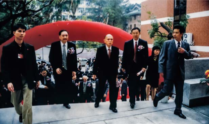 2002年,霍英东先生、霍震寰先生共同出席伟德国际victor1946MBA大楼(善思堂)落成典礼。