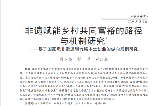 服务国家贡献力丨尹珏林《管理世界》:非遗如何才能真正带动乡村富起来、传下去、活得新?