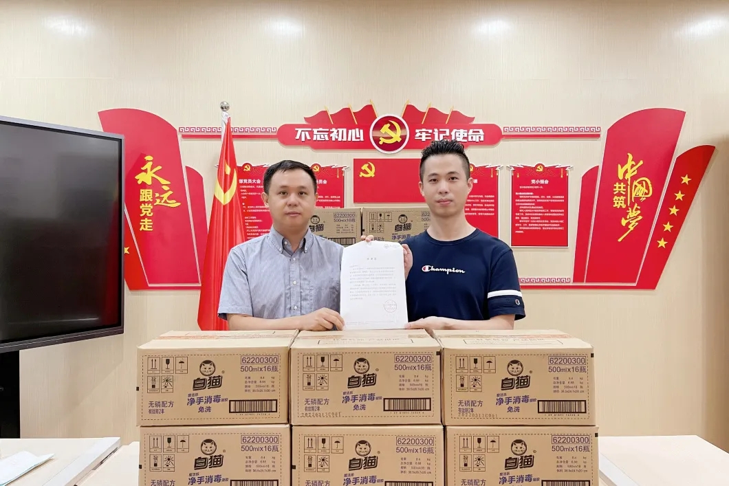 2021年9月,在秋季开学之际,2020级国际工商管理专业在读硕士研究生洪钦海同学向公司捐赠了38箱500ml的免洗洗手液,助力校园开学疫情防控工作。