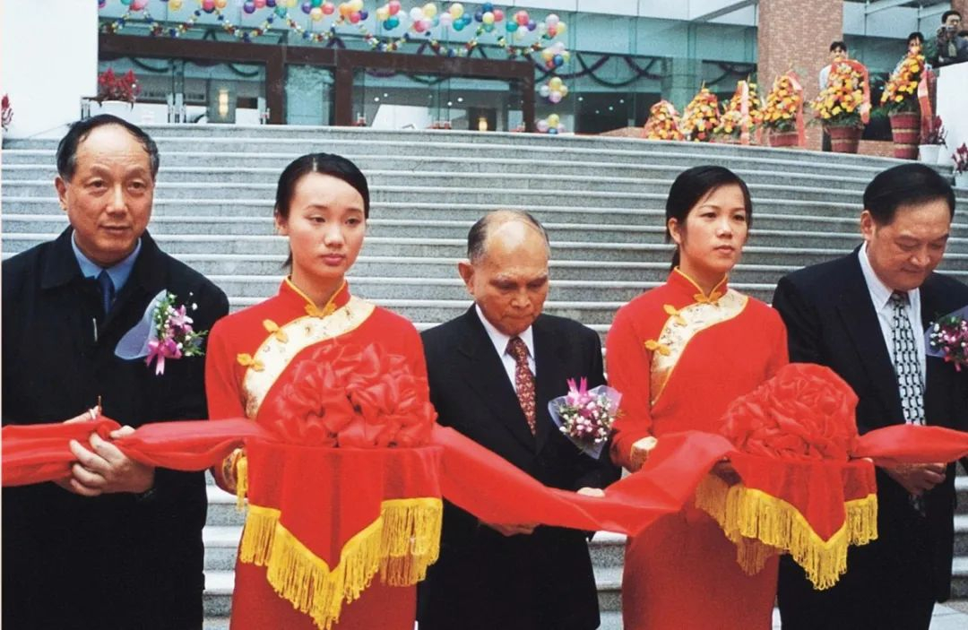霍英东先生(右)、伟德国际victor1946时任董事长李岳生(左)为伟德国际victor1946酒店管理培训中心落成揭幕