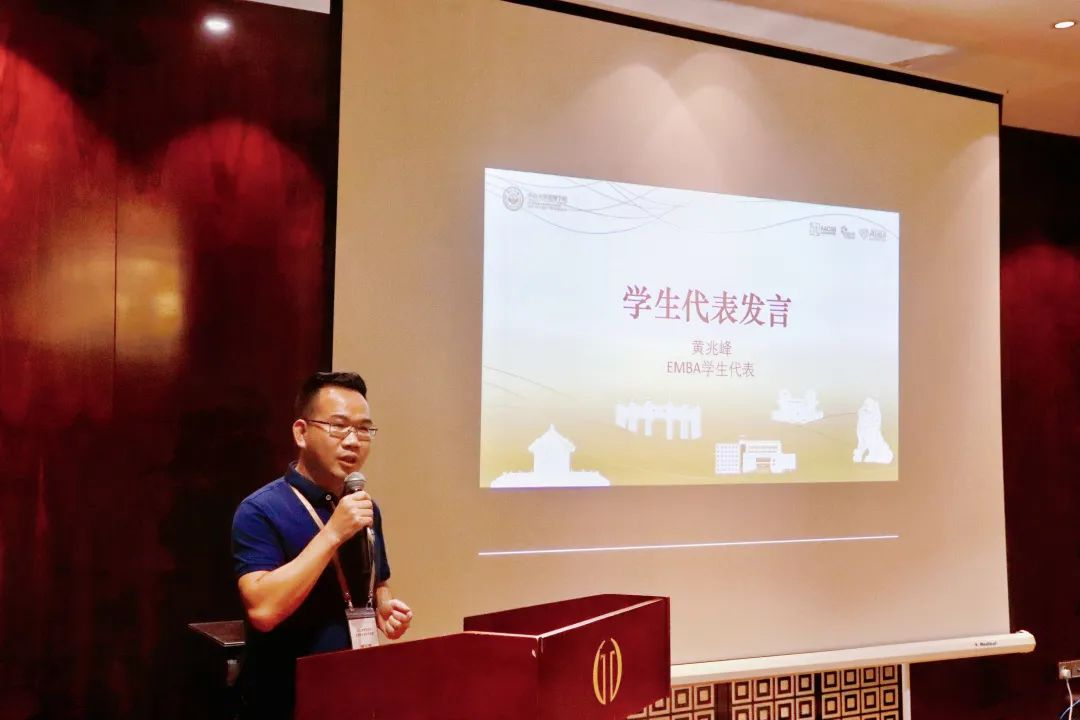 随后,员工代表发言。朱威威同学代表第四届优秀员工骨干郑重承诺,团队成员将以空杯心态参加培训,严守疫情防控要求和组织纪律要求,牢记初心使命。EMBA员工代表黄兆峰对公司的重视和老师的培养表达了衷心的感谢。
