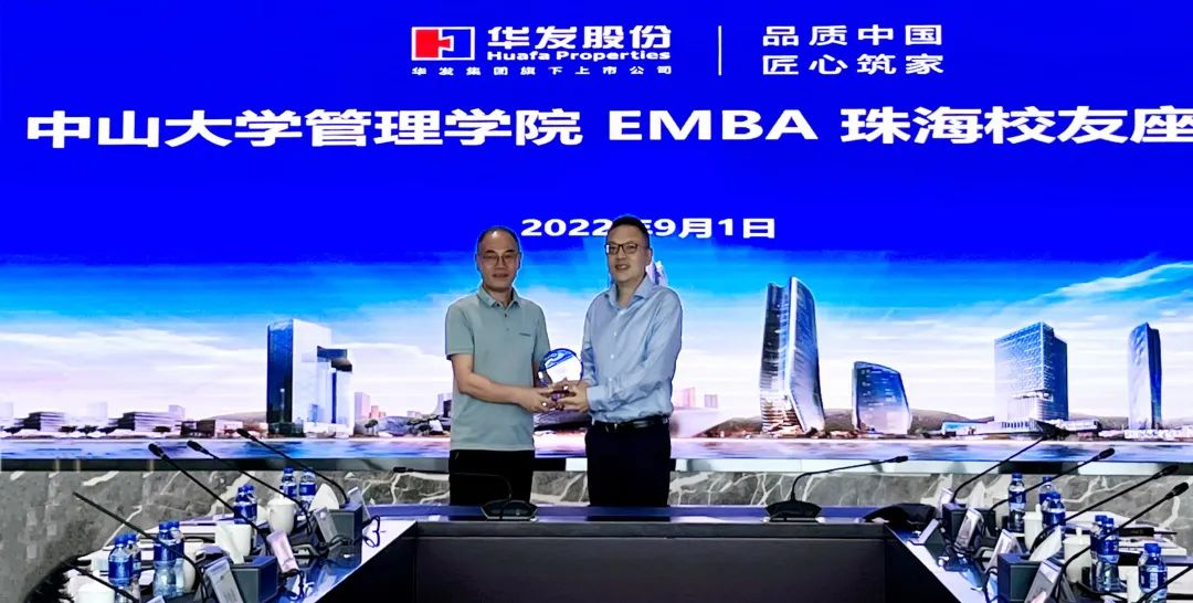 王帆经理向华发集团赠送EMBA员工理事会纪念杯