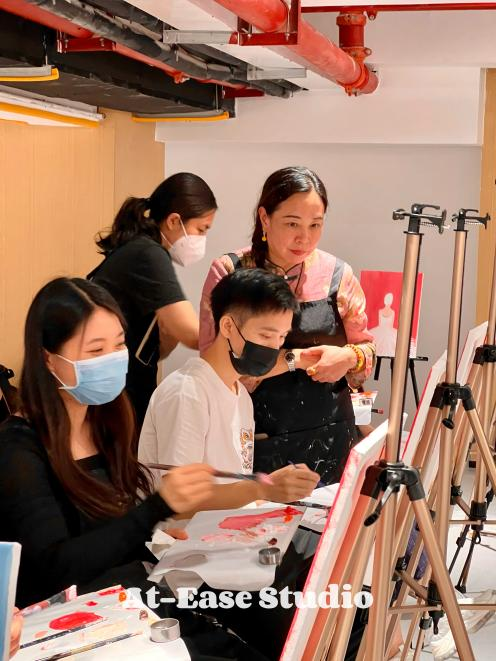 大家观摩授课老师示范作画,看完示范回座开始自行作画(这个过程授课老师会巡场观看同学们进展)