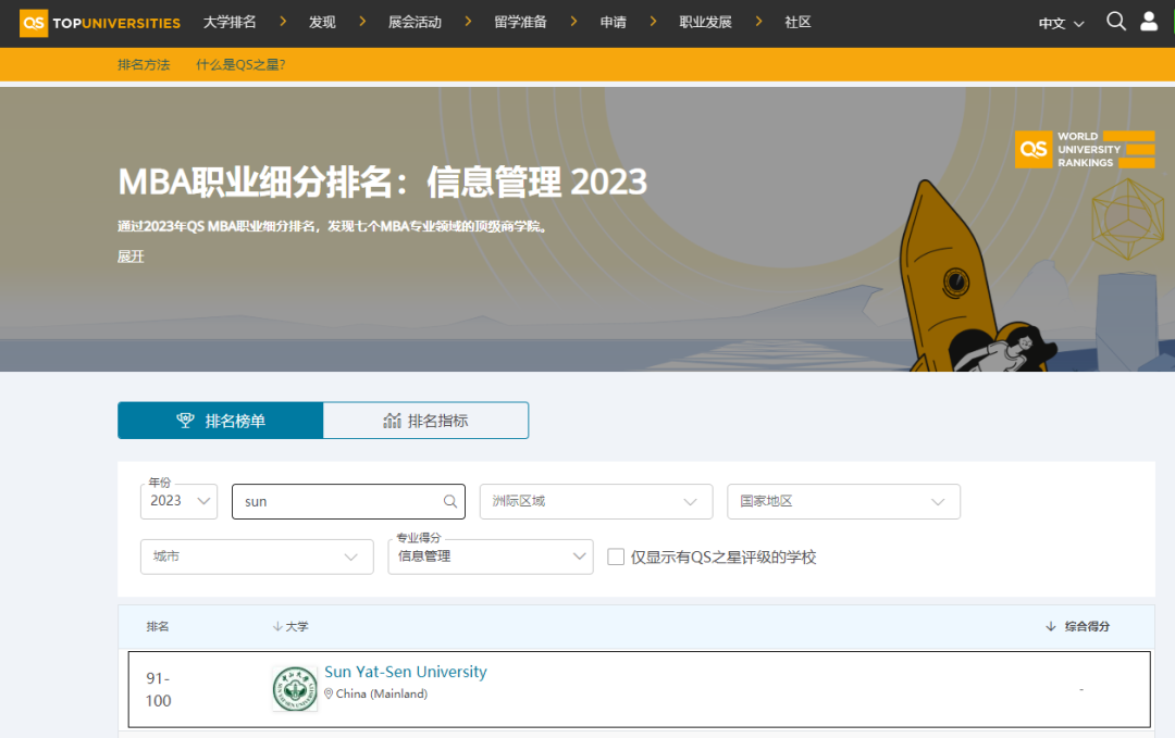 此外,在同期发布的2023 QS全球全日制MBA排名中,公司全日制MBA项目也名列前茅,位居全球前150名。其中,在“MBA职业细分排名-运营管理”中,公司位列全球前60,亚洲第8;在“MBA职业细分排名-信息管理”中,公司亦进入全球百强。