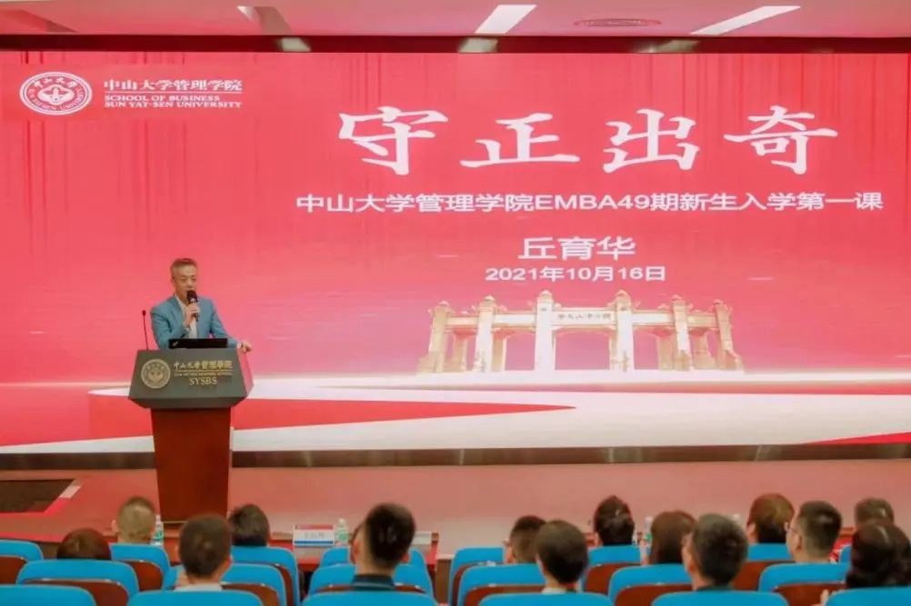 饮水思源,知行致远。在经营管理企业、担任人大代表与政协委员的同时,即便早已毕业,丘育华的身影依然活跃在校园里。在多届新生的开学典礼、迎新会上,他作为代表发言,为新生作精彩分享,分享他对时代对行业的见解与思考,以“过来人”的身份给与建议和鼓励,见证和开启EMBA同学们全新的征程。