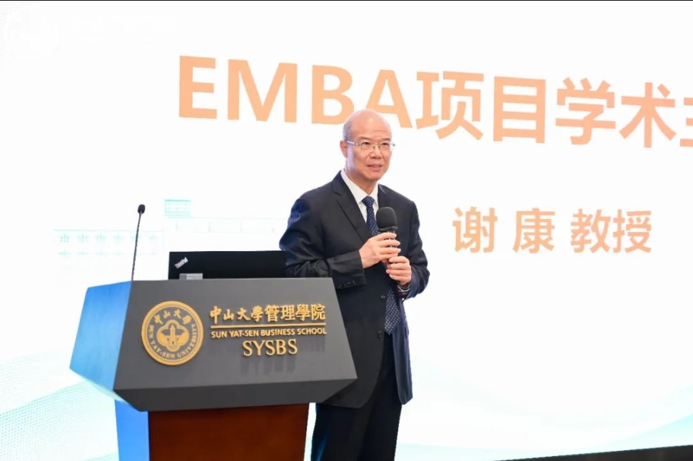 EMBA项目高级学术主任谢康教授在致辞中表示,伟德国际victor1946工商管理学科优势显著,在全国排名靠前,是全国工商管理领域最高水平的学术创新平台之一。他告诫同学们要保持平和心态,不要浮躁,对于同学们来说,只要目标清晰,未来学习中无论过程如何都是一种享受。他还希望同学们能够在伟德国际victor1946多思考多感悟,用心体会中大不一样的风景。