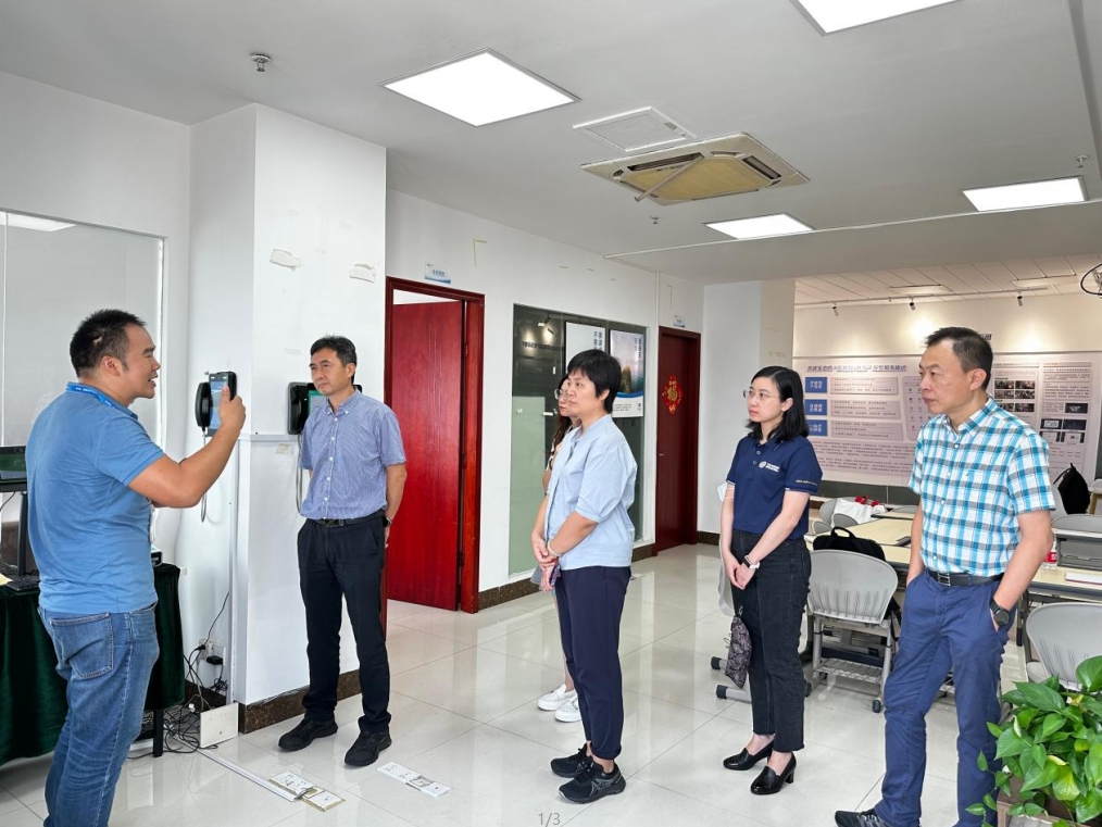 在广西一码通信息技术有限公司总经理、公司2001级旅游管理专业本科员工冯润强的带领下,公司参访团参观了一码通企业文化展厅,了解了企业发展历程、平台建设、公司团队等。冯润强员工还向参访团队介绍并演示了公司研发的智慧校园相关产品,如刷脸消费、电子班牌、刷脸门禁等电子设备。