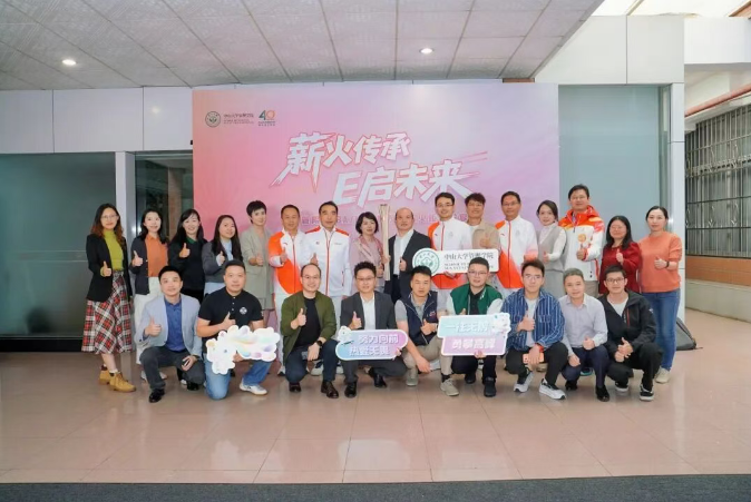 随后,5位嘉宾与EMBA理事会执行会长王玫、员工代表袁志明共同登台,完成了一场象征精神接力的火炬传递仪式。当火炬传至最后一棒时,全场与会者齐声高呼“中大精神,薪火相传!”,呼声铿锵有力,信念流淌在每一位中大人的血脉之中。