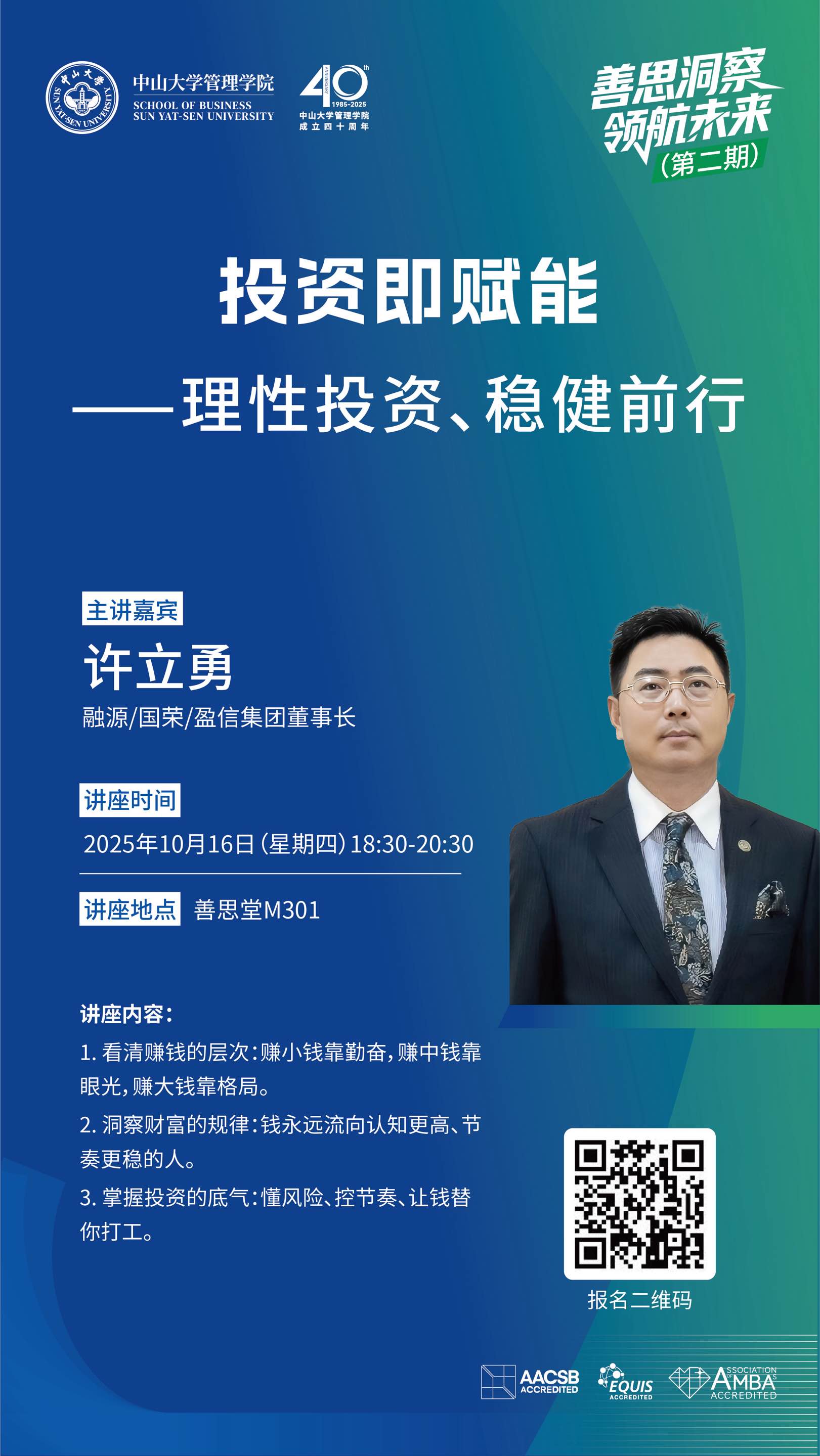 导航痕迹 伟德国际victor1946EMBA 活动 讲座预告 | 投资即赋能——理性投资、稳健前行 扫描此二维码分享 讲座预告 | 投资即赋能——理性投资、稳健前行 发布人:吴迪 发布日期:2025-10-15 活动地址 善思堂M301 主讲人 许立勇