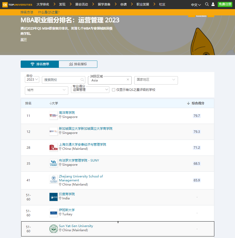 In addition, in the QS Global Full-time MBA Rankings 2023 released in the same period, the full-time MBA program of our school also ranked among the Top 150 in the world. Among them, in the "MBA Career Segment Ranking - Operations Management", our school ranked among the Top 60 in the world, 8th in Asia ; In the "MBA Career Segment Ranking - Information Management", our school also entered the Global Top 100.