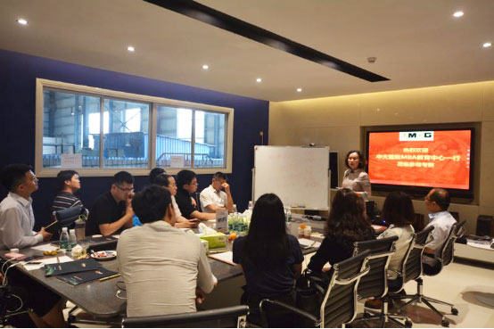 在结束了车间的参观后,丁总以及环球集团的管理人员与大家进行了座谈,介绍环球石材的工业4.0转型之路和营销模式,深入探讨了企业在目前经济与竞争环境下如何突破瓶颈,提升营收,大家也纷纷运用学到的商业知识和业界经验,从战略、营销、财务等多方面多角度为企业献计献策。最后,丁总跟我们分享了个人职业转型经历,讲述了他从IT转换到实体制造企业,并一步步成为总经理的奋斗历程,我们也坚信丁总将会带领企业获得更大的成功。