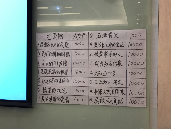在第一部分中,蔡老师以一场别开生面的游戏——“价值观拍卖会”向大家诠释价值观如何影响人的思维和行动。一张取之不尽用之不竭的信用卡、美丽浪漫的爱情、做世界上最聪明的人、名垂青史、活过100岁、直言不讳的勇敢和百折不挠的真诚……这一样样拍卖物品,折射出人们对于快乐、自由、财富、家庭、健康、真诚的选择,体现出不同人内心深处不同的价值观。