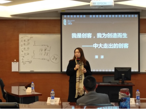 随后,QUALITY GIRL品牌创始人蒲源以自己的创业经历和MBA创业大赛的经历向参会的同学介绍,创业项目中如何寻找自己的合适项目,发现项目的商业价值、研究项目的市场规模、寻找项目的闪光点在大赛中为项目加分;接着,蒲源师姐结合大赛过程叙述自己的创业点滴,用自己的经历诠释“奉献是一种价值、感恩是一种义务、创业是一种能力”。