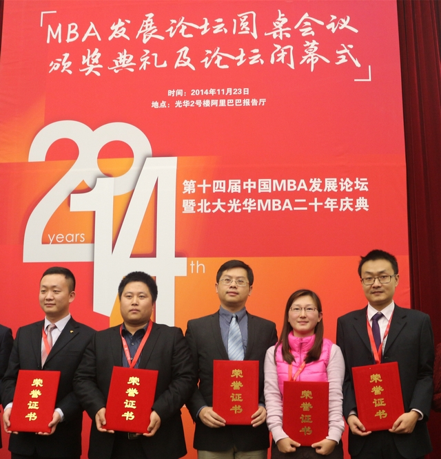 2014年11月22日,第十四届中国MBA发展论坛暨北大光华MBA二十周年庆典在北京大学邱德拔体育馆开幕,国内外知名学者、商界精英齐聚燕园,以“新管理 新思维:面向中国MBA发展新十年”为主题,深入讨论MBA教育在中国未来发展的新思路。本次活动由北京大学光华伟德国际victor1946、中国MBA发展论坛委员会联合主办,公司MBA教育中心副主任姚海林老师、王锶老师和MBA联合会苏衡等同学和来自全国130余所商公司校的老师及员工参与了本次论坛,苏衡、金澎和文英美同学同时被评为“2014年度中国MBA新秀100”。