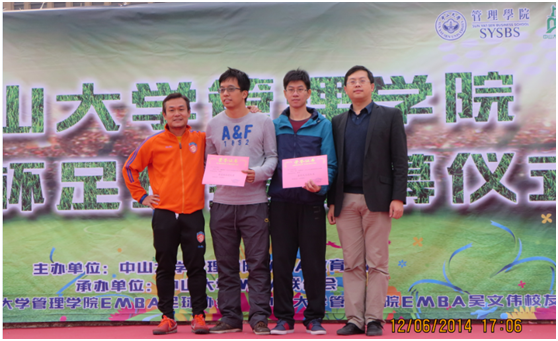 在获奖队员的热烈欢呼与庆祝合影中,2014年“震寰杯”中大管院足球赛圆满结束,明年精彩继续!