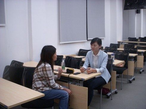 讲座中,同学们纷纷提到该如何确定自己的职业发展方向,请求王女士进行职业诊断。王女士即时组织了二位同学开展模拟销售,根据模拟过程中的销售技巧、性格特点与个人背景,给予充分的点评,并对她们的未来职业发展方向提出了宝贵的意见。