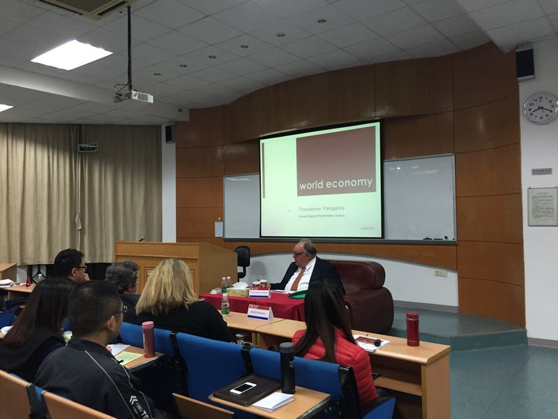 希腊,与中国同属四大文明古国。对多数中国人来讲,这个国家留给我们的印象总是离不开这些关键词:爱琴海、神话、雅典娜、圣托里尼、斯巴达、伯罗奔尼撒、特洛伊、荷马、亚里士多德、苏格拉底、柏拉图、阿基米德、奥林匹克、橄榄枝,等等。文明、战争、神秘、历史、美景等元素交织出一幅璀璨而又令人向往的异国风光大片。近年来,由希腊经济危机引发的欧债危机,不时见诸报刊,让万里之遥的中国人对这个国家又有了一些世俗的认知。2015年1月,卸任不久的希腊前副总理Theodoros Pangalos教授的广州之行,则让伟德国际victor1946的同学们和员工们有了零距离接触最真实的希腊的难得机会。通过希腊驻广州总领事Mr. Constantin Cakioussis 的穿针引线,年逾七旬的Prof. Theodoros Pangalos 于1月17和18日连续两天在伟德国际victor1946主讲了题为“European Economics – Greece as A Case”的MBA名师论坛。