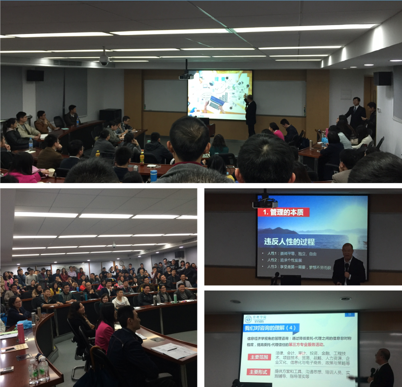 谢教授以三个问题开场:管理的本质是什么?管理有没有对和错?管理的目标是效率还是平衡?随后以生动风趣的语言将看似艰涩的“委托—代理”理论、博弈论等管理理论娓娓道来,深入浅出的讲解将理论的精华传递给全场。
