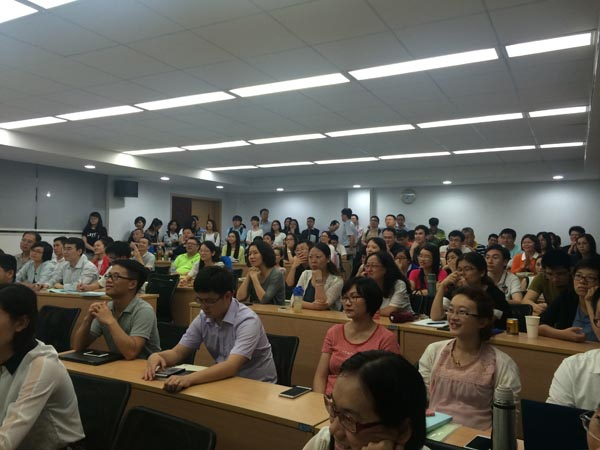 嘉宾讲师是自北京的A.PLUS优卓国际管理咨询有限公司创始人,MBTI认证讲师Lawson Chu(朱德成老师)。他曾主管yahoo亚洲公司在亚洲地区的人力资源管理及培训工作,并负责建立了在港台地区、新加坡、中国大陆和印度的分支机构。活动现场座无虚席,后排更是挤满了站着的同学,非常火爆。