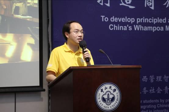 最后,2015级PTMBA6班的余展鹏同学以生动丰富的事例,向大家具体展示了MBA课程的教学科目,以及班上活动和班级建设的丰硕成果,分享了自己班级建设的管理经验。他活泼幽默的分享令在场的2016级新同学对即将开始的MBA校园生活充满期盼。