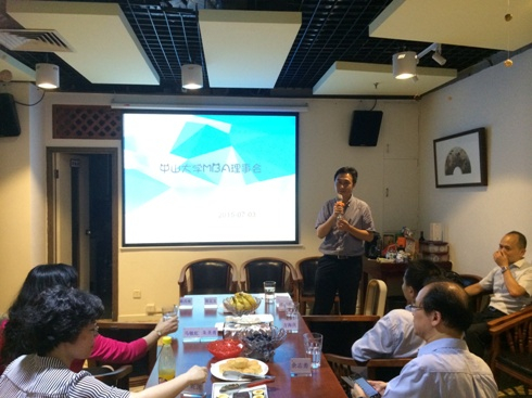 2015年7月3日晚,中大管院MBA理事会、联合会2015年上半年工作小结会议在微圈会所召开,中大管院MBA教育中心王远怀主任、MBA理事会会长陈弘文、MBA理事会副理事长蔡昌俊、马敏虹、方海庆、MPAcc理事分会副理事长王甦、特邀理事佘志勇、辛相峰、MBA顾问委员会负责人李泽江及第九届MBA联合会主席团成员共16人参加了本次会议。