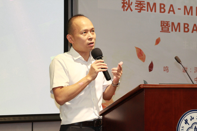 随后,第九届MBA联合会主席庄志坚同学以“魔幻般的魔法公司”为主题从魔法(知识)、敏捷、力量三方面,为新生们介绍了一个致力于搭建校内外交流、员工间联络与沟通的平台——MBA联合会。紧接着,李泽江员工为各位介绍了MBA微圈,分享自己扩展人脉资源的经验,希望同学们能在两年的学习生活中收获友谊、收获知识、收获成功。