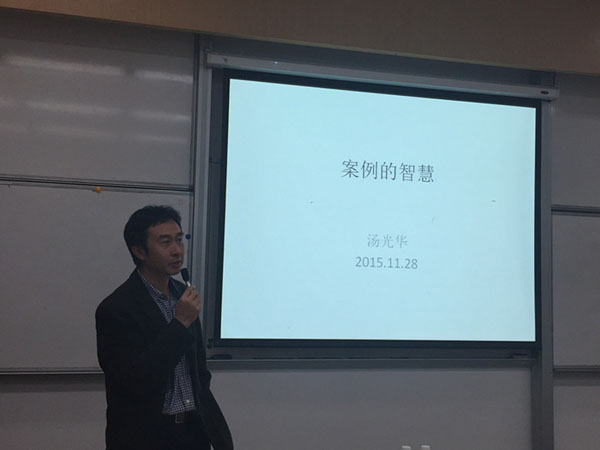 汤老师还亲身示范了案例分析报告的正确打开方式。他认为,好的案例分析报告的要素包括时间、地点、人物、外部条件、内部场景、事例过程、最终结果,其中要特别重视中间部分。此外,案例还应该包括本身、周面、扩展及模拟的分析,要由表及里,由此及彼,内容需要结合多学科知识,并还要加上对案例的评论,比如哪些做法是可取的,哪些是有待改进的,哪些缺乏论据纯粹只是猜想。只有这样才能不断提出问题,加以分析,进一步提升自己的智慧。