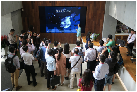 走进微信总部大楼后,由微信专业的讲解员带领大家参观了微信企业展示、发展历史并展示了各种微信功能。