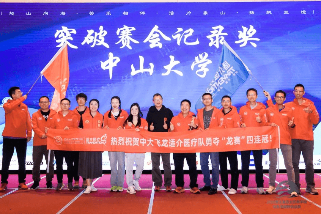这次比赛在宁波象山举行,汇集了来自全国三十多所高校的越野队伍。在这场激烈的竞争中,中大飞龙适介医疗队再次展现了强大实力,以5:36:15的成绩刷新了赛会记录,赢得了第五届比赛的冠军。此外,他们还获得了包括金麒麟奖、突破赛会记录奖、最佳组织奖在内的18个奖项,A队男子第二、三、四、五、六、八名,B队男子第二、四、八名,以及B队女子冠军和传奇领队奖等18个荣誉。