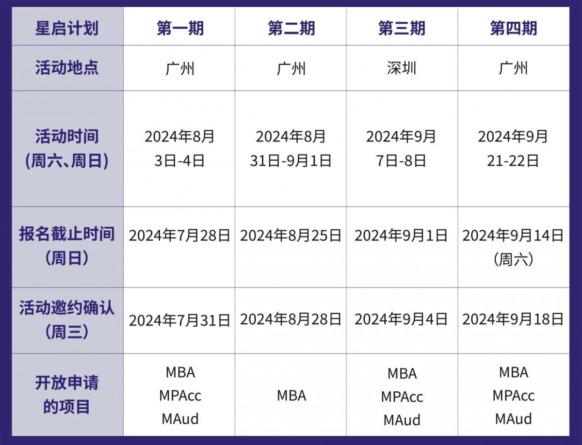 1、“星启计划”仅面向非全日制方向的MBA、MPAcc、MAud申请人开放。