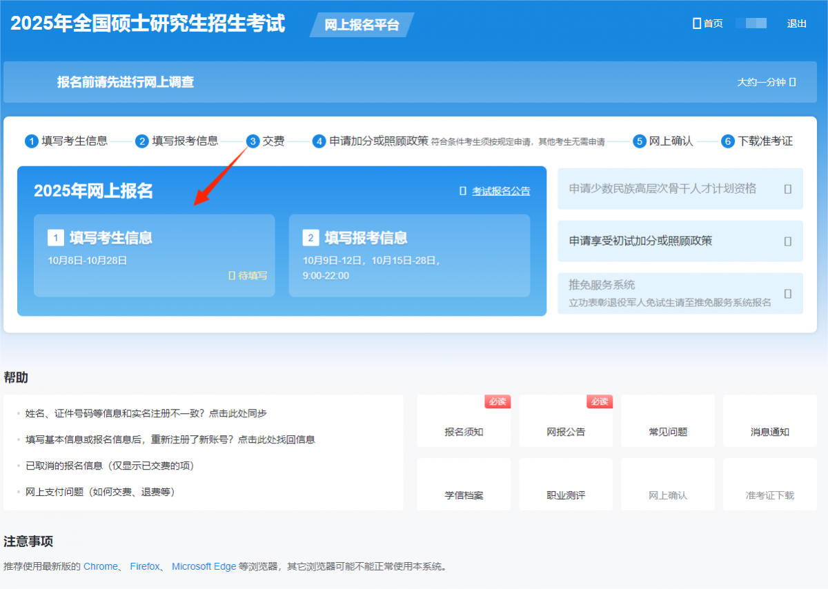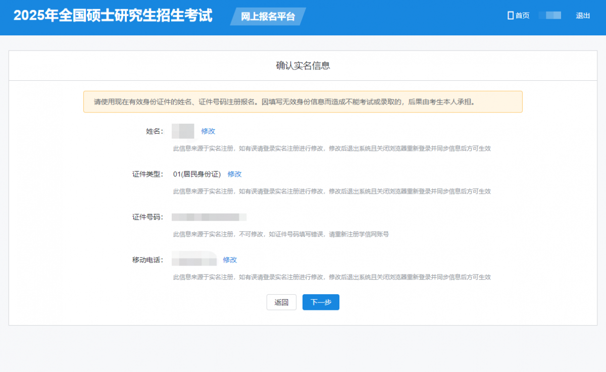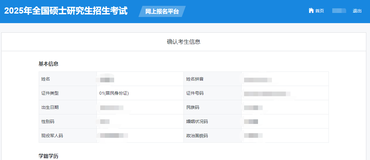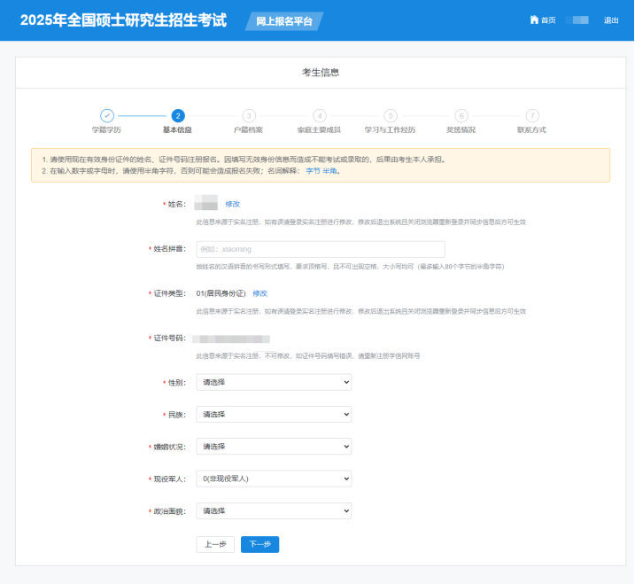 1)请考生自行检查填写信息,确保填写的信息与实际证件完全一致;
