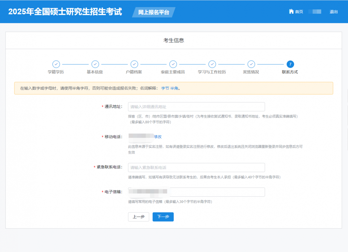 说明:“考生通讯地址”有可能作为录取阶段录取通知书的寄送地址,请尽可能填写长期有效的地址。
