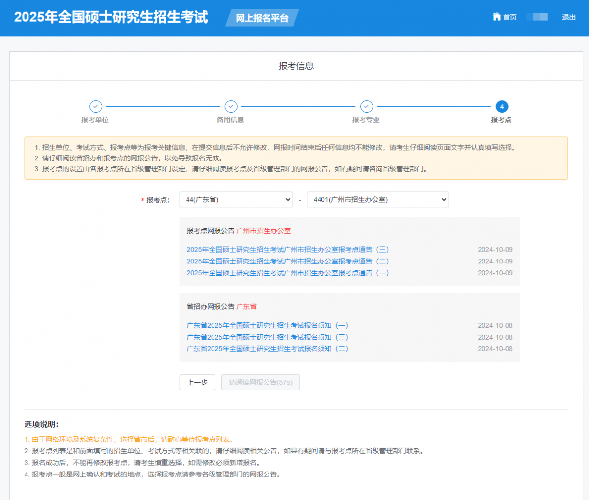 1)选择报考点:请务必详细阅读各省市相关报考点公告,确认是否满足考点报考要求。