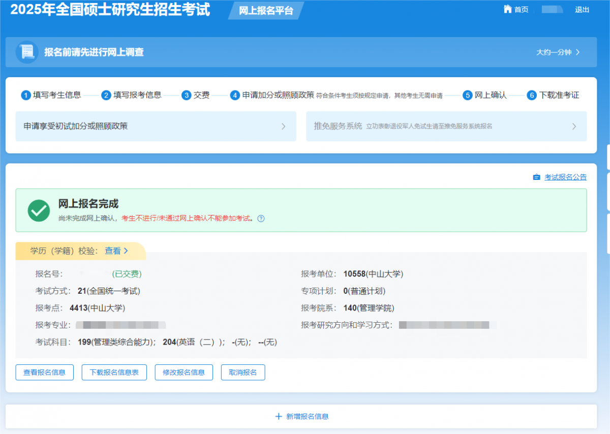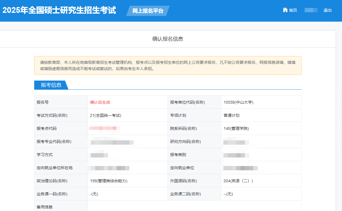 3)考试科目为系统自动关联,请考生选择后检查:考试科目均为199-管理类综合能力、204-英语二两门;