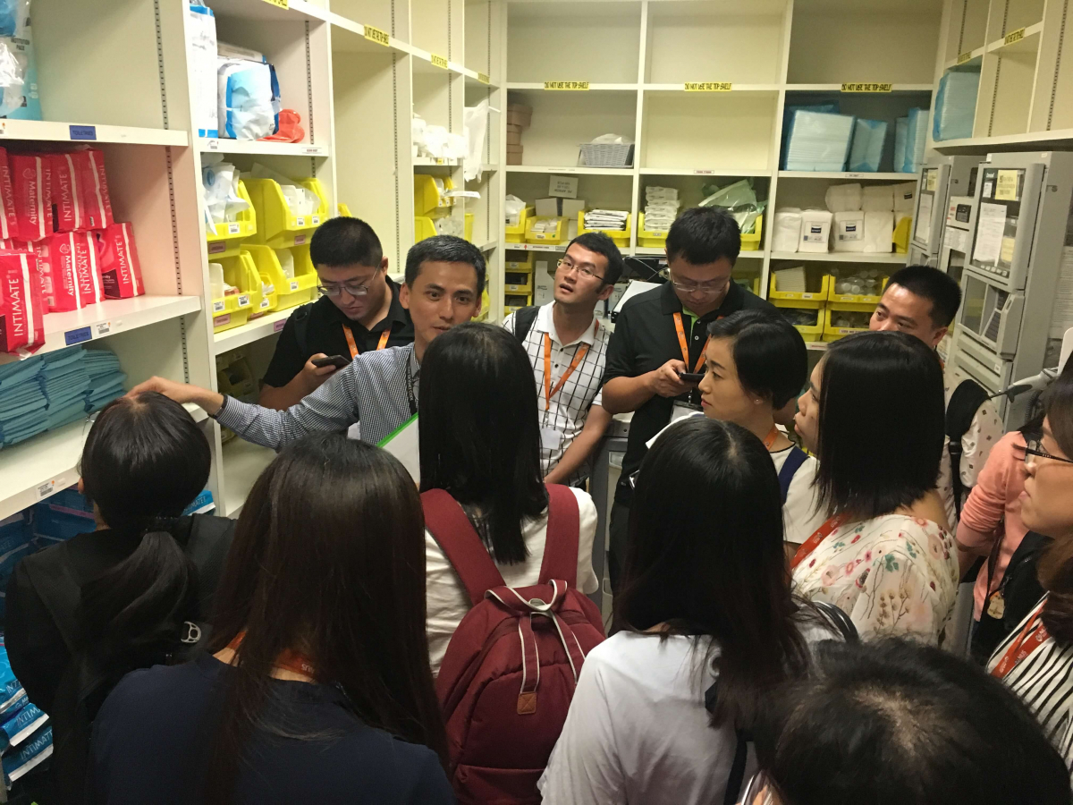 同学们在新加坡国立大学医院认真聆听了质量改进和病患体验部门刘经理对医院质量管理文化和流程的细致分享,并向她咨询了QI部门在实际操作过程中遇到的难题挑战和应对方案。在实际的医院行政部门和病房等参观中,学员们对他们贯彻质量管理取得的成果表达了钦佩。