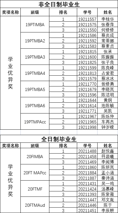 2022届伟德国际victor1946MBA-MPAcc -MF-MAud学业优异奖拟获奖名单公示