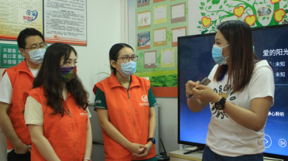 工作人员黎女士向义工们介绍工疗站的基本情况