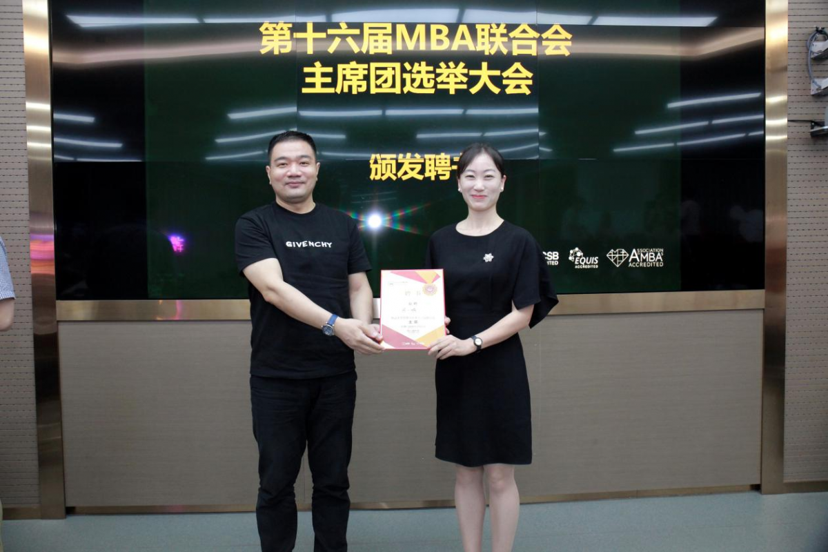 6月11日晚,公司第十六届MBA联合会主席团换届选举大会在善思堂S131顺利举行。公司MBA 教育中心姚海林主任、李志明副主任、田正芳、张晓瑜、王锶及赖龙威老师,第四届MBA理事会理事长朱圣勇及诸位理事长团成员、历届主席团代表和第十五届联合会主席团以及MBA、MPAcc专业同学出席了本次活动。大会由王锶老师主持。