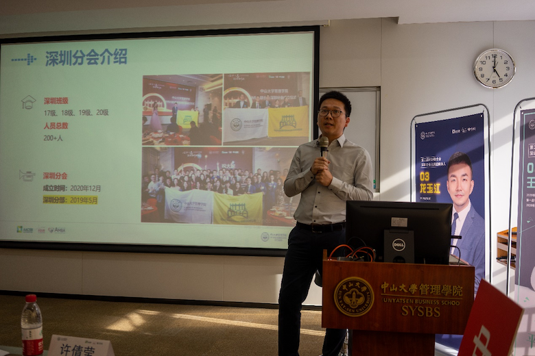 新一届主席龙玉江同学对各位老师及同学的肯定表示感激,并表示将会在新一年的联合会工作中,为中大管院MBA深圳班各届同学和员工贡献热情、倾情服务!