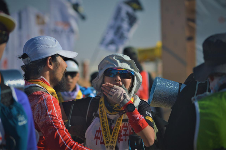 5月2日比赛的第一天(25km),队员们经历了高温和中午时分阳光的暴晒,顶着沙丘奔跑与平地奔跑巨大差别带来的严峻挑战,奋力刷新自己和团队的成绩。炎热的天气和拼尽全力的沙漠奔跑导致过半数A队队员们在比赛过程中出现了大腿拉伤、抽筋、乏力等情况。得益于前期系统的训练,队员们在比赛中及时进行调整,做好补给和身体恢复,克服万难,竭尽全力到达终点,获得团队成绩第9的好成绩。