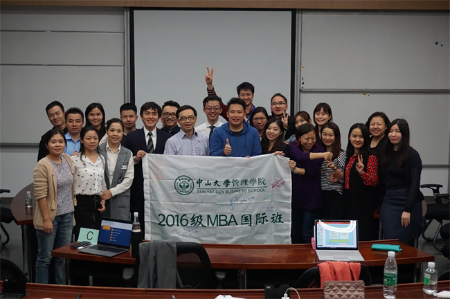 “在职国际班每月集中四天授课,强度非常大。同学们都很努力,常常做作业到深夜,或者凌晨4点就会起床打卡。”为了更好地领会老师们的授课内容,黎思伟每个月都会要求自己读完一门英语课本。不仅严格要求自己,作为班长,黎思伟更是积极带领同学们主动学习,在每一次上课前组织小组讨论,并进行不断的组别更新,既调动了大家的学习积极性,还有效促进了同学们友情的快速融合。“每一个能够考上中大管院MBA的同学,无论在学识方面还是思考问题深度方面都非常优秀,希望大家能够在班级课程讨论中,在思考问题及分析案例方面,产生不同角度的思想碰撞。”