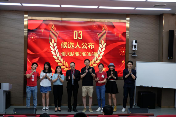 9名候选人上台亮相并发表个人竞选口号。让优秀传承,让梦想延续。打造一流商公司联合会,精英学子们代代相传,逐梦前行!