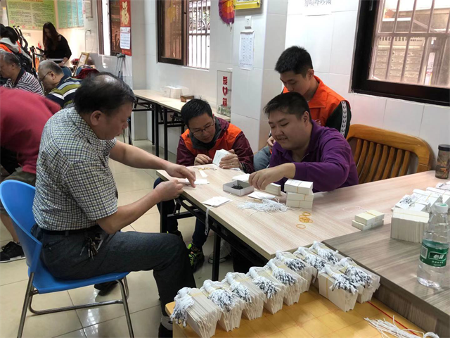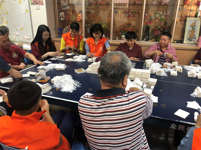 在了解工作内容后,志愿者们主动加入到了劳动的行列,帮助工友分担工作量,陪他们聊天,消除工作的枯燥。此外,志愿者们也与工疗站负责人沟通,探讨更多能够帮助残障人士的途径。