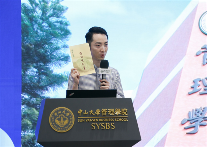 2017级在职MBA员工蔡诗洲详细介绍了自己选择就读中大管院MBA的追梦之旅和心路历程,并向同学们分享了自己在中大管院丰富的课程学习、校园生活。他表示,在中大管院的学习,除了显性知识的收获,还有更多隐性知识的收获,即思维和思考方式的升华。